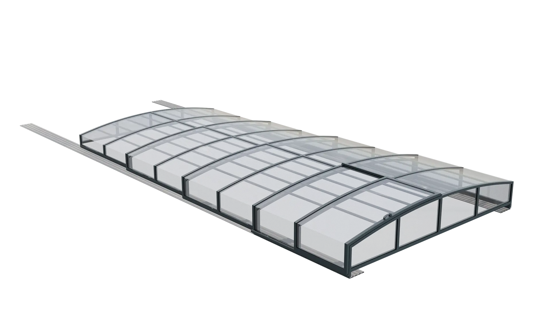 Model STAR se vyznačuje atypickým tvarem s kolmými bočními stěnami a velmi nízkou výškou. Jeho jedinečný design jej předurčuje pro úspěch v moderní zahradě. Výška bazénového zastřešení STAR je v nejmenším segmentu od 480 mm (v závislosti na počtu segmentů a šířce bazénového zastřešení).