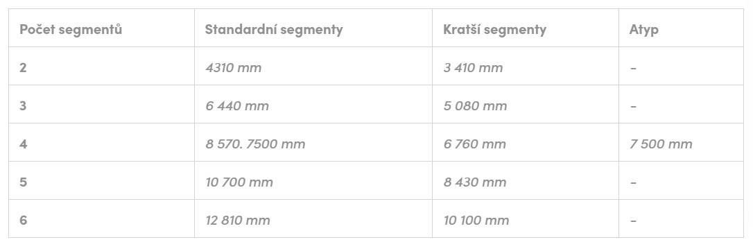 STANDARDNÍ DÉLKY SEGMENTŮ